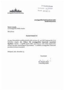 A dokumentum megdöbbentő részleteket tartalmaz. Az Országgyűlés dr. Völner Pál országgyűlési képviselő mentelmi jogát – korrupciós ügyei miatt – a legfőbb ügyész KSB. 4347/2021/4. számú