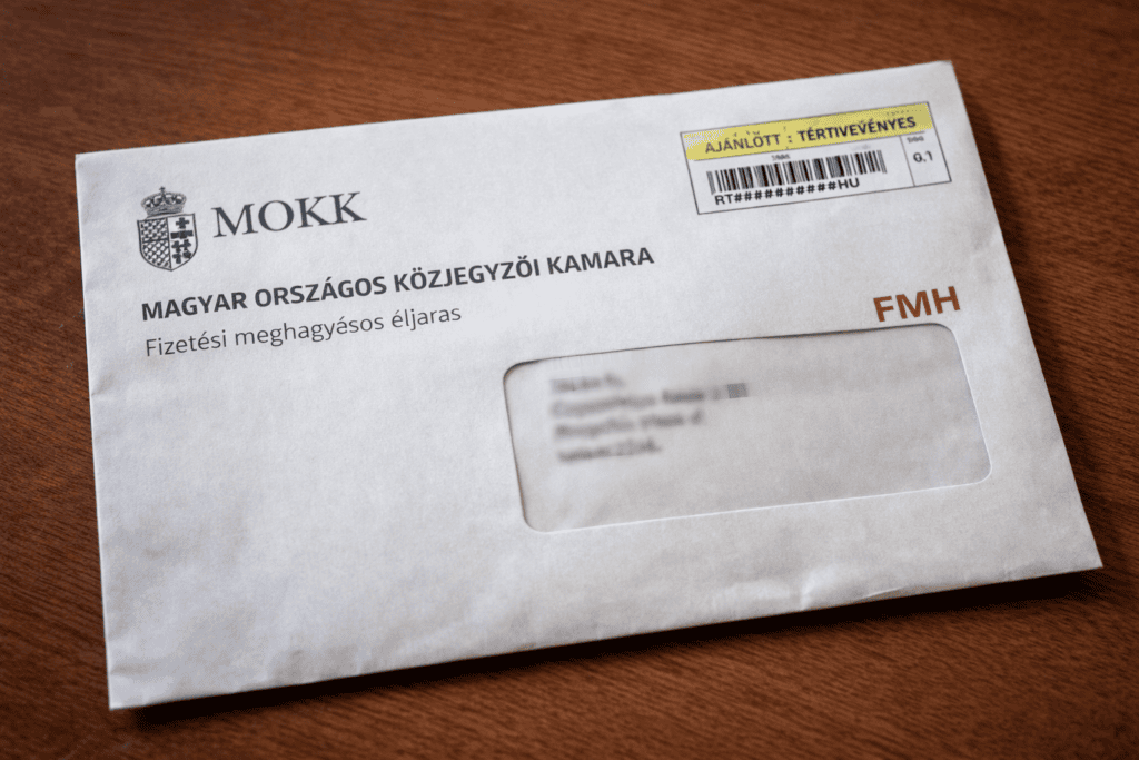 - A jogosult (pl. követeléskezelő) fizetési meghagyást (FMH) kér egy közjegyzőtől